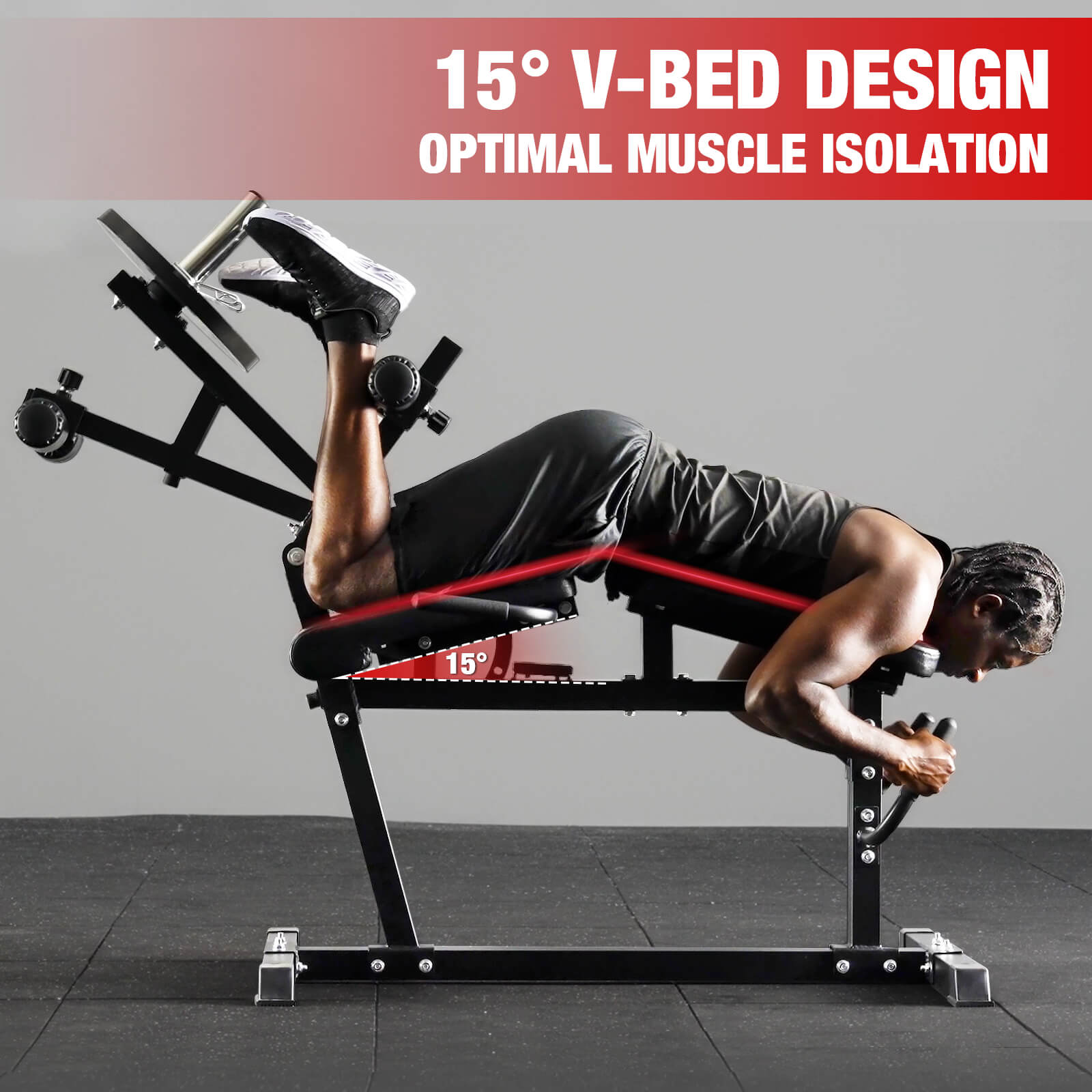 The innovative 15° V-bed design on this lying leg curl machine isolates your lower back muscles, reducing strain and minimizing the risk of injury. By preventing momentum, this design ensures controlled, effective muscle engagement, making it an essential tool for safe and efficient leg extension and curl exercises.