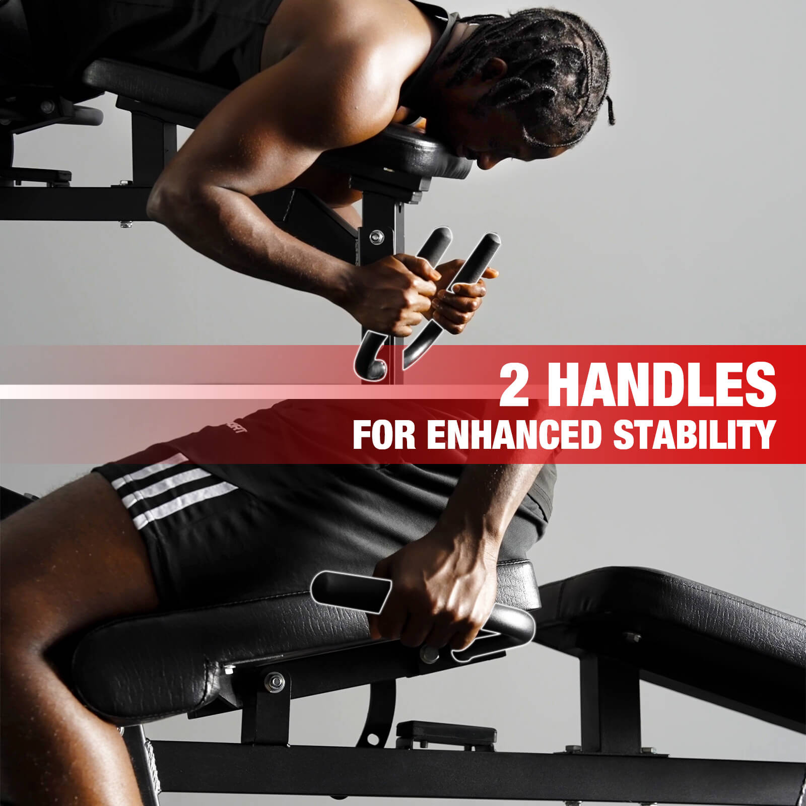 This leg extension and curl machine offers dual functionality, allowing you to perform both lying leg curls and leg extensions. Target your hamstrings, calves, and hip flexors with the lying leg curl, while focusing on your quadriceps with the leg extension. This versatile leg extension and curl machine is a compact solution for comprehensive lower body workouts at home.