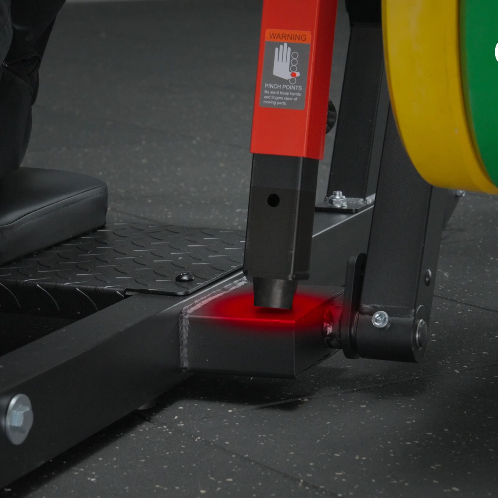 The safety limiter can be adjusted to the ideal length to accommodate varying body types and training needs. A rubber shock pad at the bottom cushions impact and safeguards the machinery.
