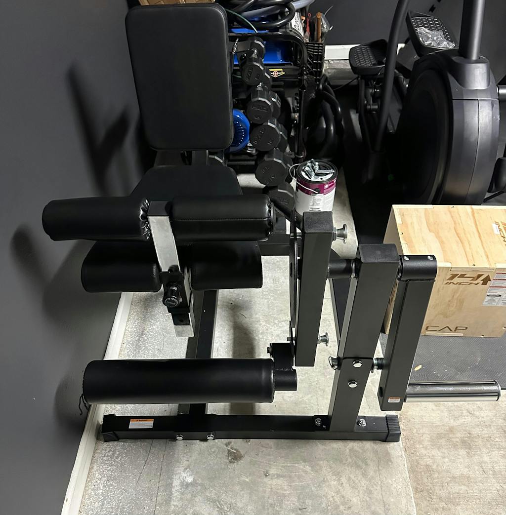- Easy adjust between hamstring curls and leg extensions by rotary leg clamp mechanism and pop pins
