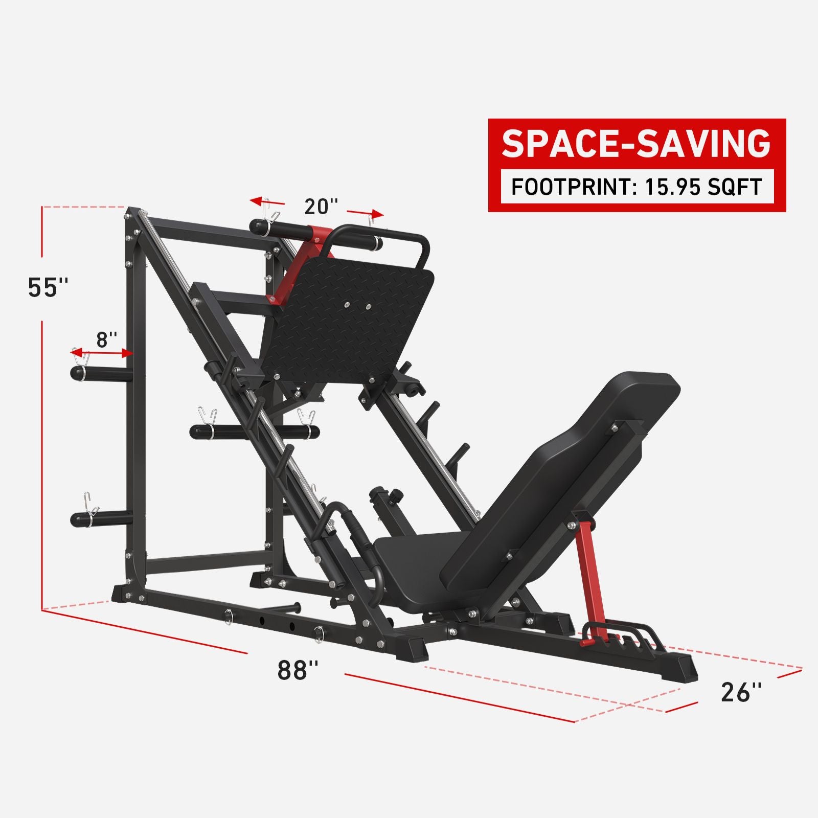 Occupying just 16 square feet, LP05 is a space-saving leg press machine ideal for home gyms, apartments, or garage setups. It delivers full lower-body training while taking up 20% less room than bulkier models—perfect for users with limited floor space.