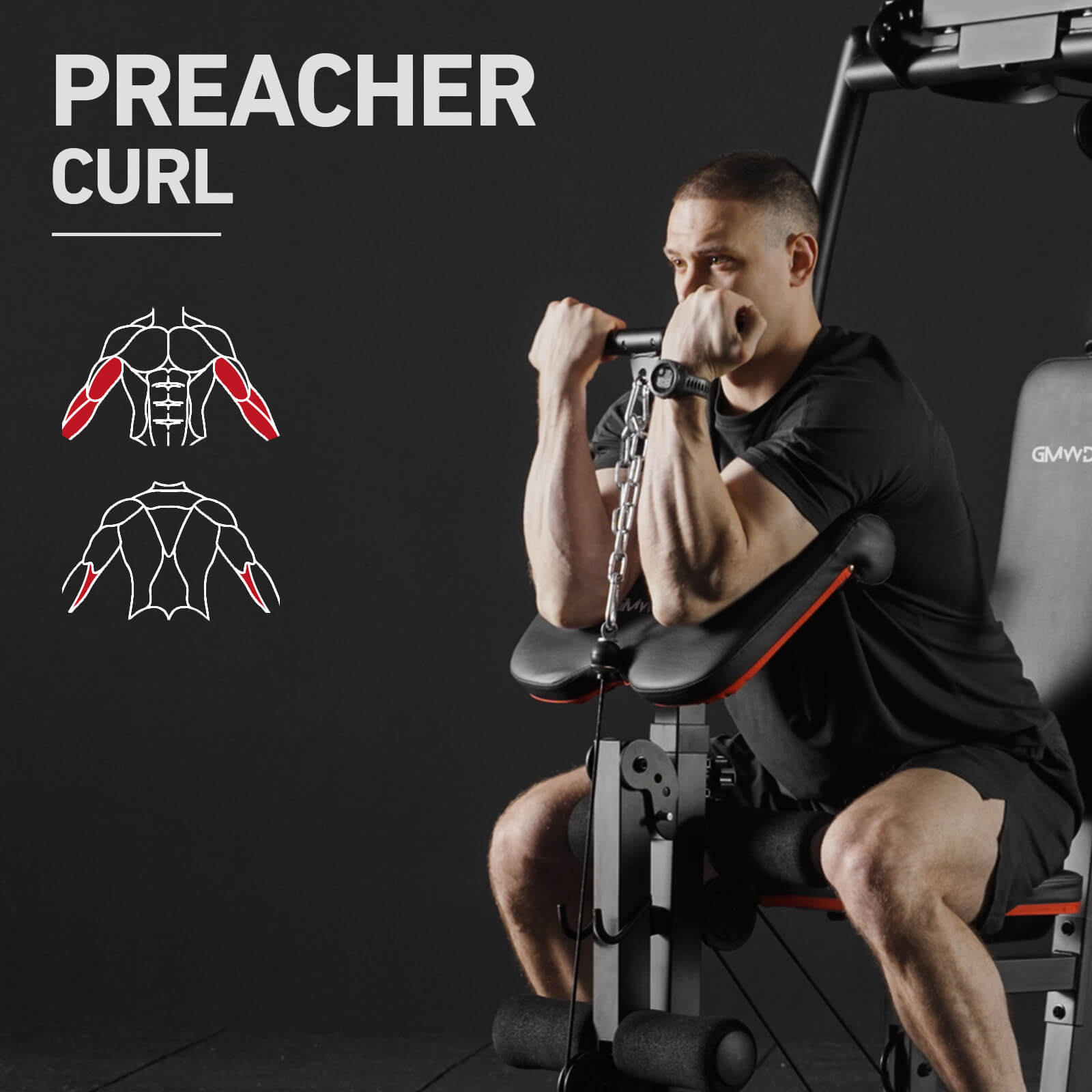 The detachable preacher curl pad enables additional exercises like leg press, calf training, leg extensions, and leg curls, maximizing your equipment's functionality.