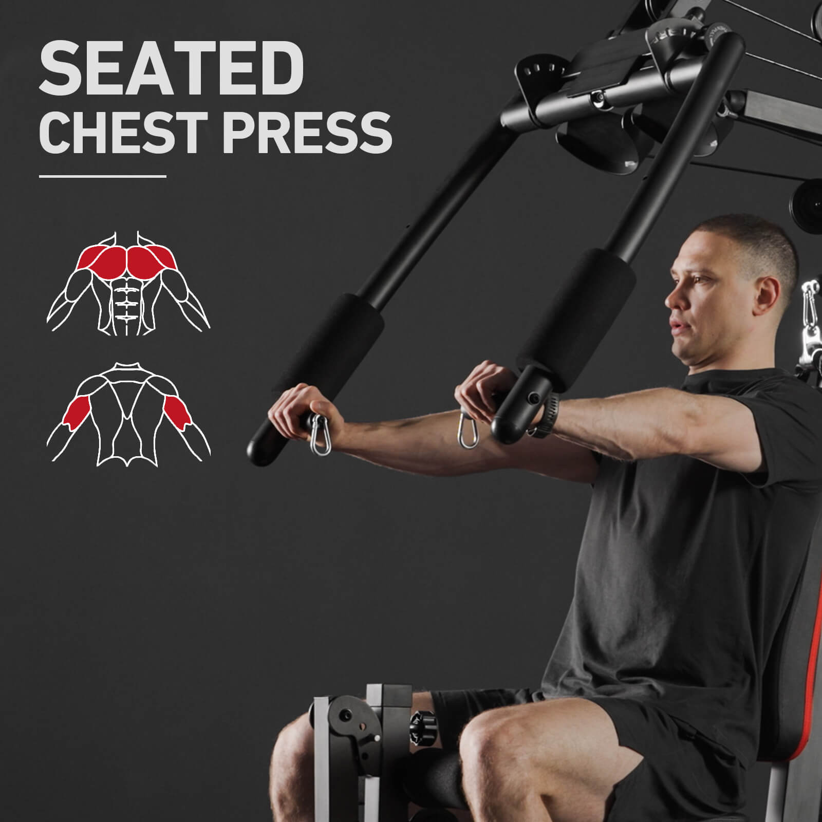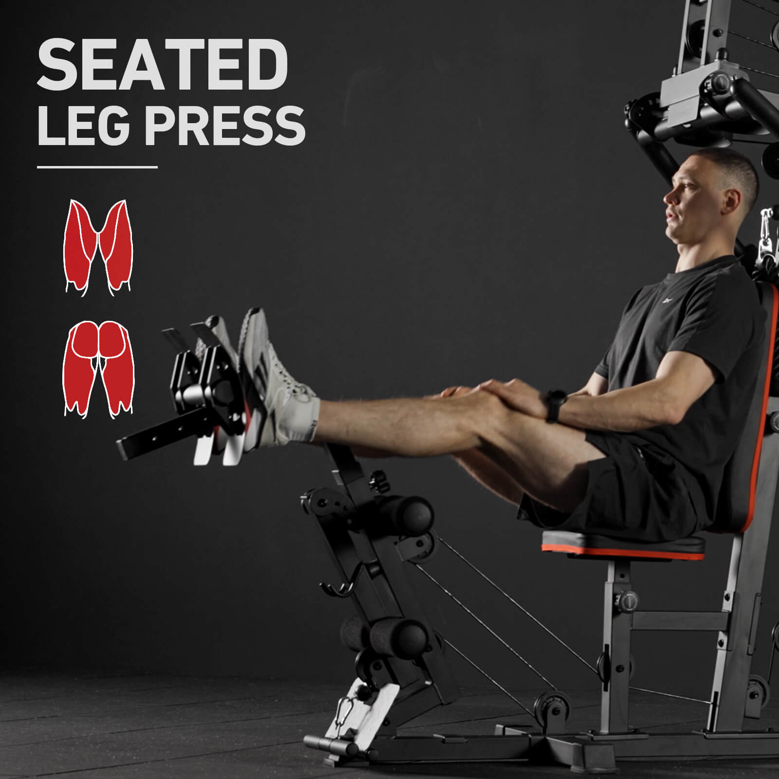 Transform your fitness routine with our all-in-one multi-gym station, designed for over 50 exercises. Equipped with high, mid, and low pulley systems, along with chest press, fly, and back extension functions, this powerhouse allows you to perform lat pulldown, low row, chest press, leg extension, leg press, core training, and more. Built from high-quality steel, offering exceptional stability and longevity. Non-slip foot pads and a protective steel sheet for the counterweight block ensure a safe and secure workout.