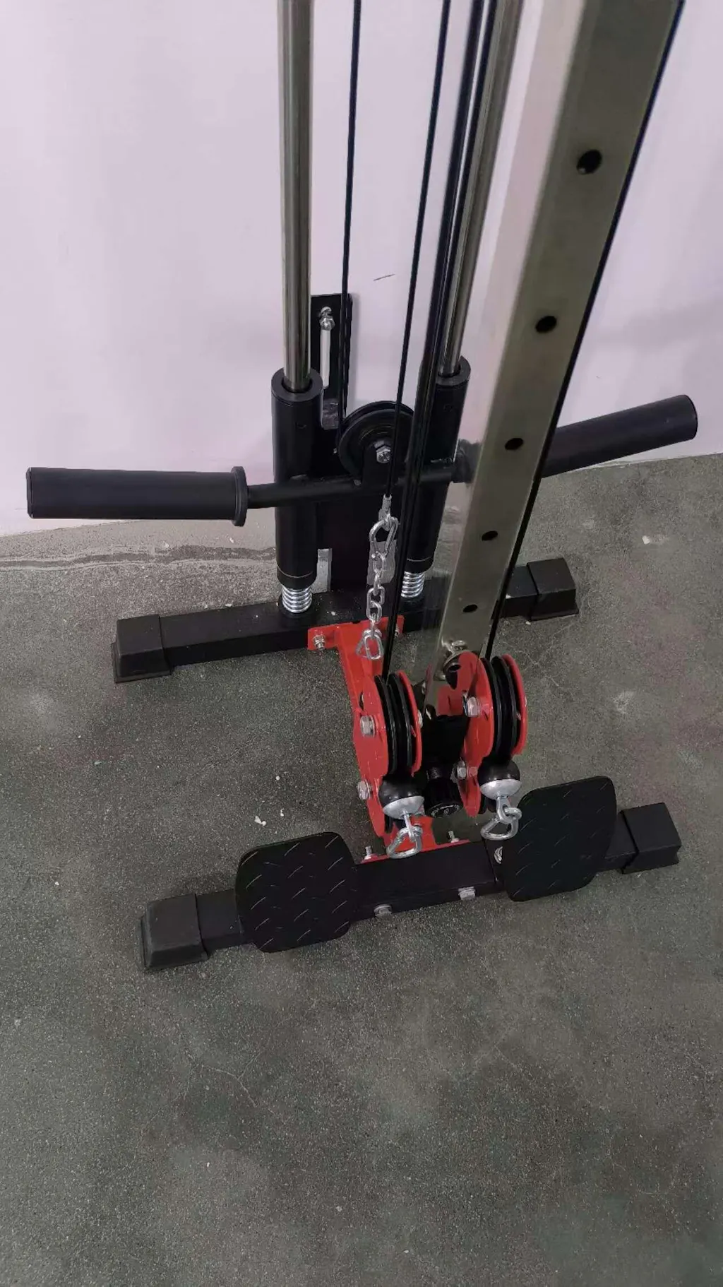 Constructed with heavy-duty, nylon-coated aircraft-quality cables rated at 2200 pounds of tensile strength, the CC03 supports up to 400 pounds of load capacity. Its H-shaped base ensures stability during workouts by minimizing shaking, while the smooth gliding plate-loaded carriage system provides seamless movement along the tracks.